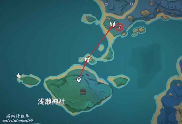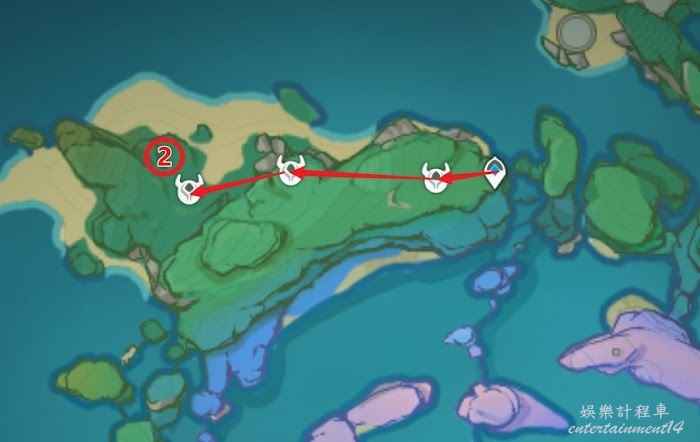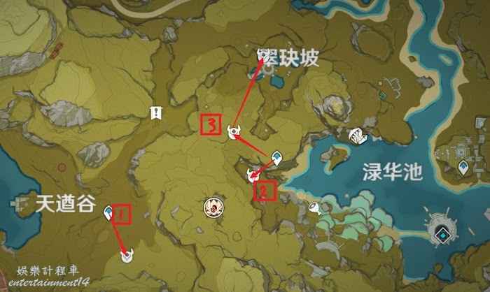 ▲圖中一號線路為三隻騙騙花同時出現,陣容強度偏低的玩家謹慎前往。三號線路為走到對應位置後現身,均為成對出現。
