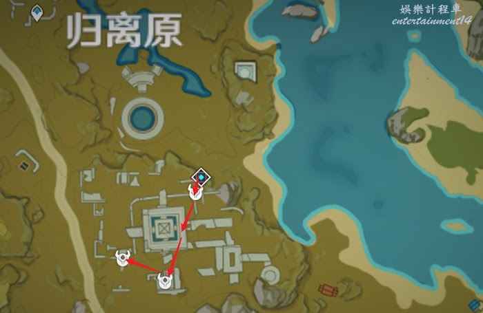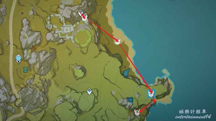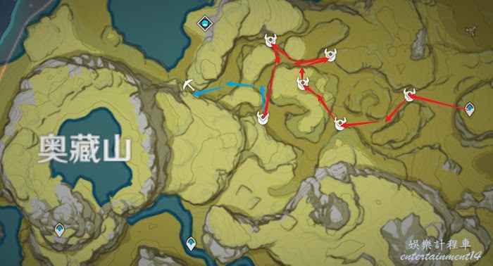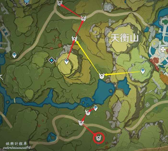 黃色線路為聖遺物採集線路,此線路可與聖遺物狗糧採集點位綜合使用。