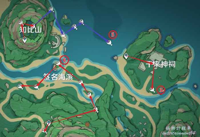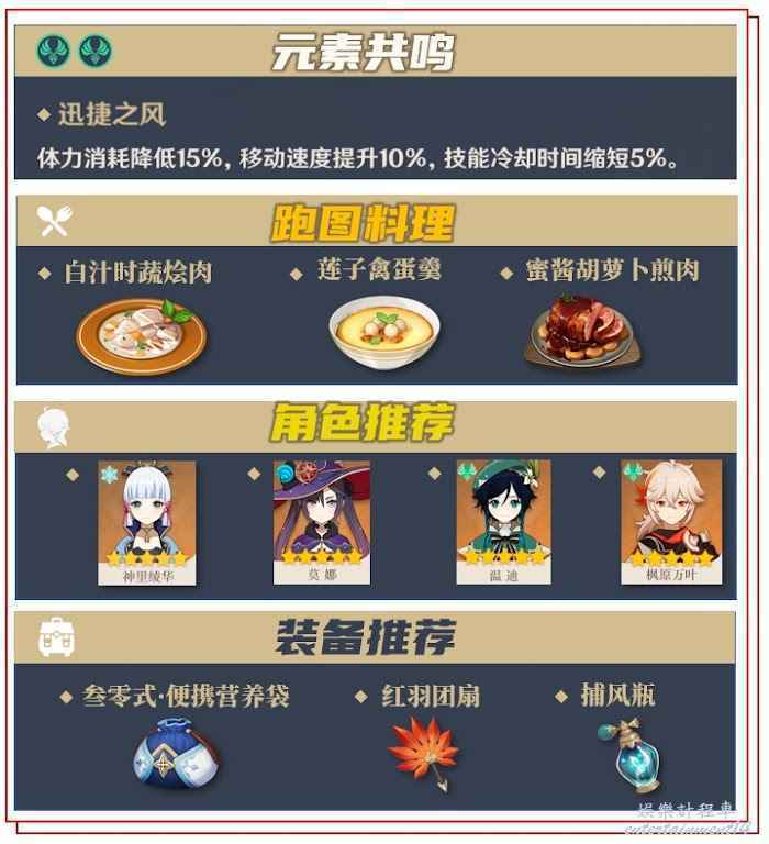 採集討伐類材料線路線路均已最大化降低高度差(攀爬)、地形(游泳)對材料獲取效率的影響,材料線路依照獲取效率由高到低依次推送,請各位旅行者根據自己實際情況挑選食用。