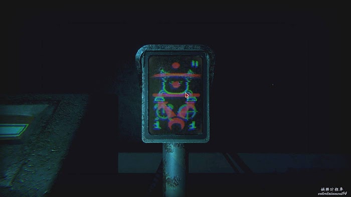 在右側房間中可以看到一個飛在空中的小機器人,點一下讓他在空中轉圈,再點一下會讓它打開閃光燈。在時機合適時,能看到隱藏在黑暗中的提示。