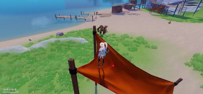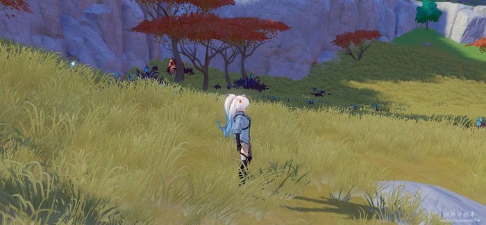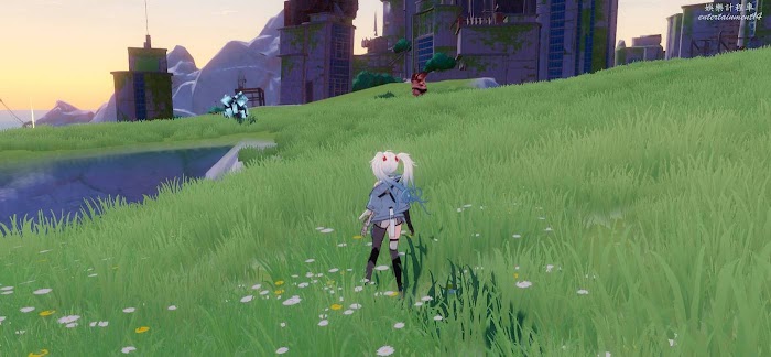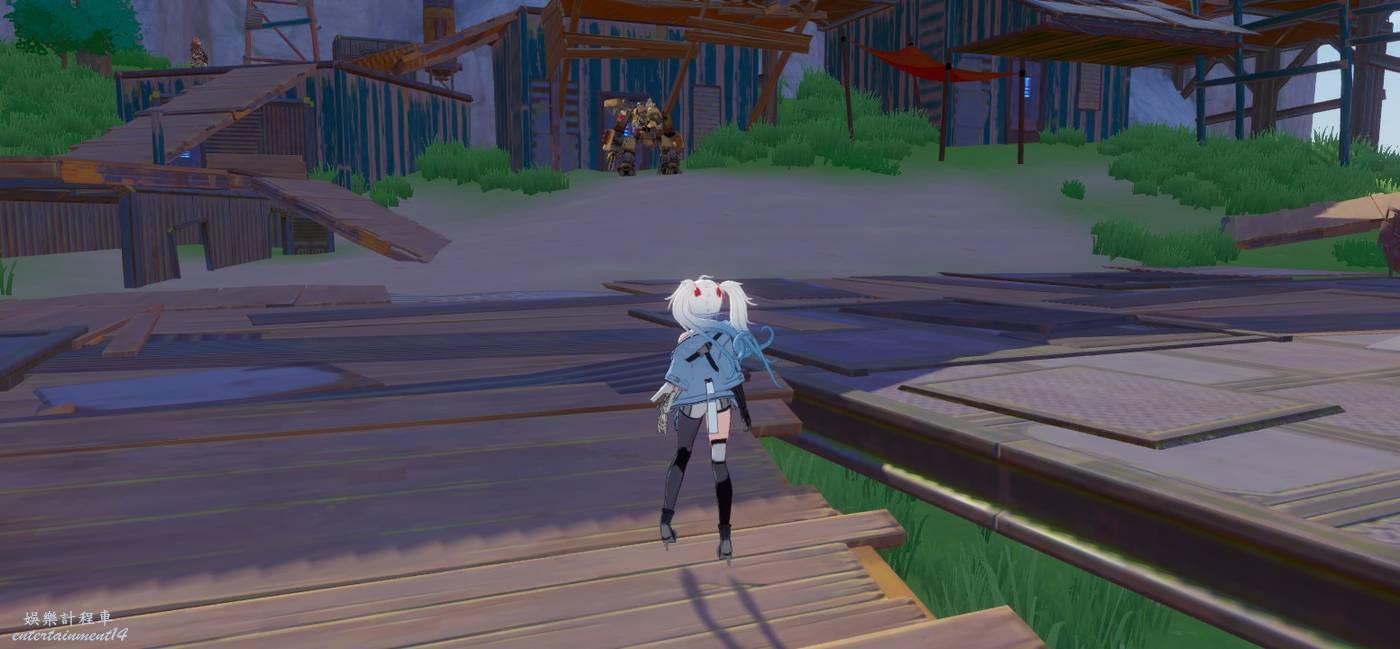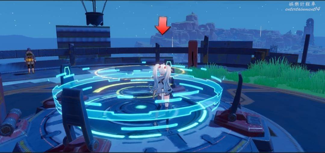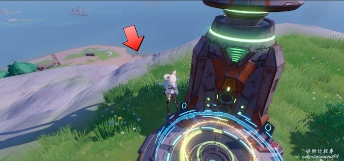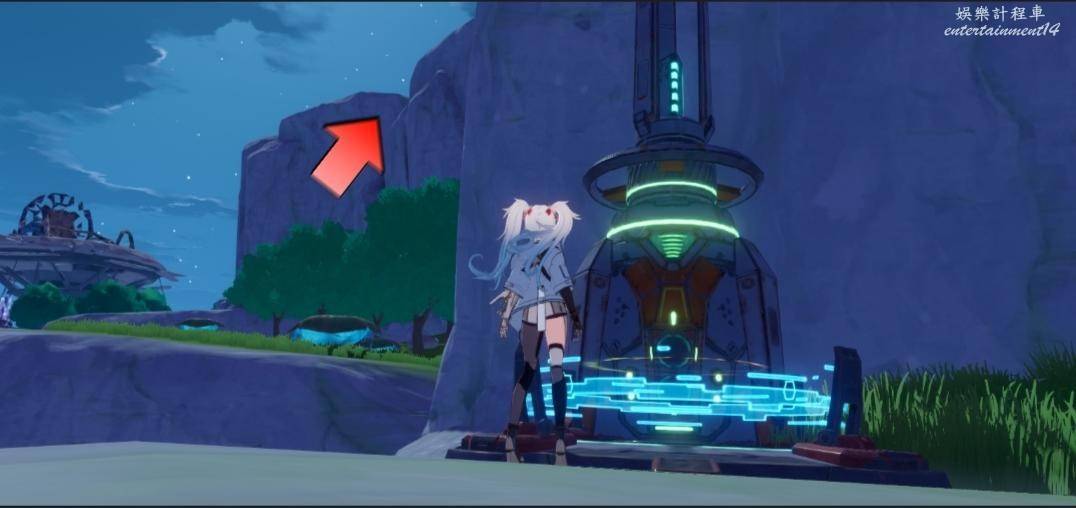 啟動原能塔-納維亞,使用噴氣背包飛到原能塔後面,可以看到有一座較為平整的山崖,飛過去,爬到山崖上面