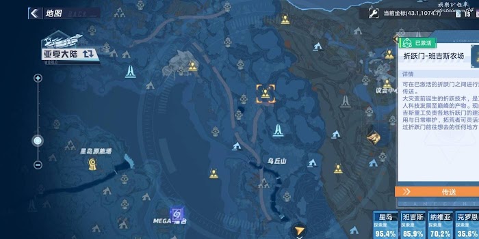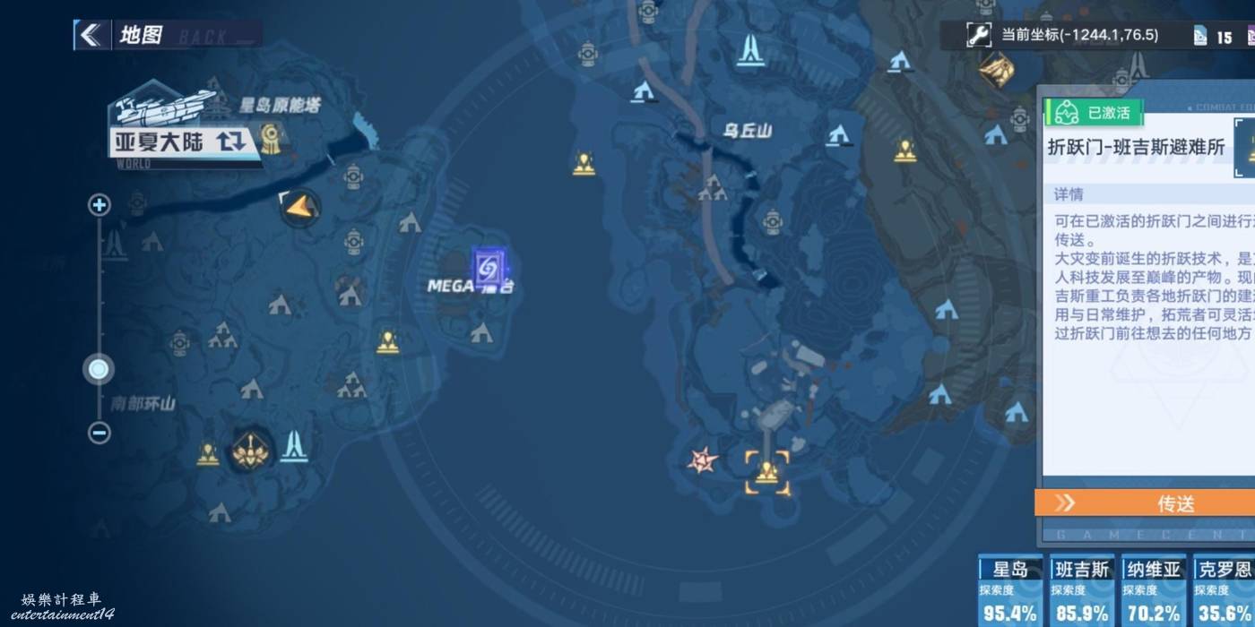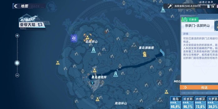 啟動折躍門-南部山區,一直跑到我畫線的這個位置,這邊有個沙灘