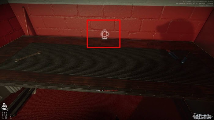 我們也可以在身後的房間門處放置門楔,來避免人質亂跑或遭到匪徒從背後偷襲。拿出門楔將鏡頭對準門下方的縫隙,長按滑鼠左鍵即可放置門楔。