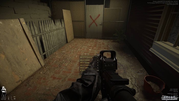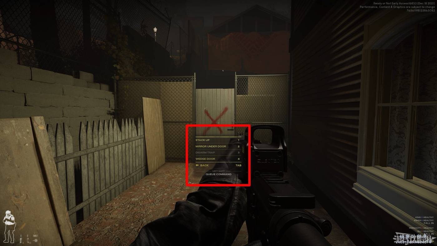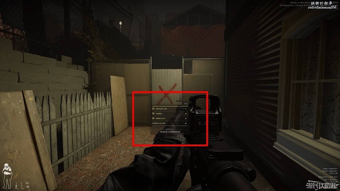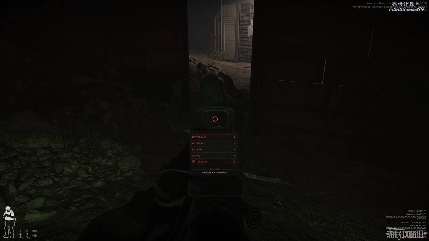第二項開門操作種,我們可以命令AI開門後清理房間、開門後投擲閃光彈、開門後投擲橡皮彈手雷和催淚瓦斯。在確認門後有匪徒存在時,該項命令可以十分有效的讓敵人喪失戰鬥力,讓我們成功將敵人俘獲。