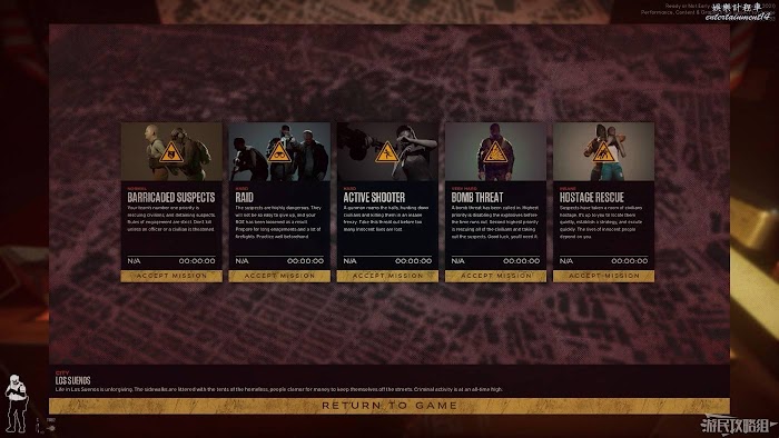確認關卡後我們還需要選擇遊戲模式,不同的模式會帶來不一樣的玩法。模式從左向右第一個為【人質營救模式】,在該模式下地圖中會有人質和匪徒兩種角色,我們需要消滅或者抓獲匪徒,並將人質全部救出。