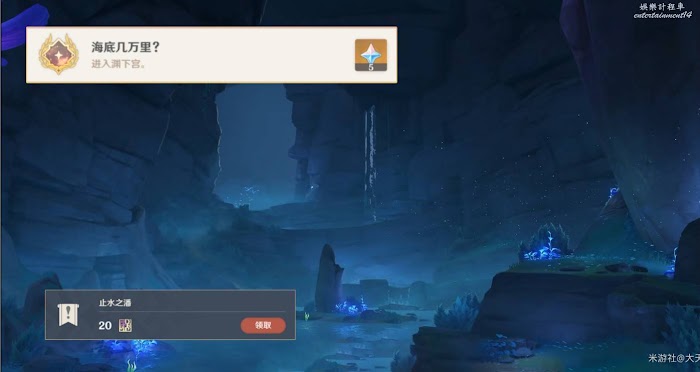 按照任務指示來到一處地方以後,世界任務「止水之潘」完成,並得到30原石的任務獎勵和成就 [ 海底… … ]。