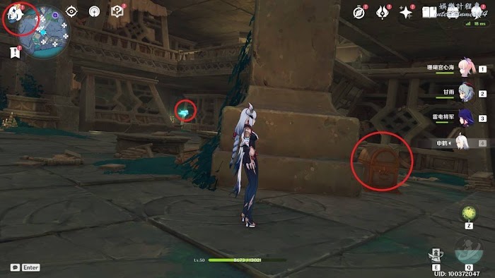 此處有一個華麗寶箱,一個仙靈,一個鍵紋(左上角)
