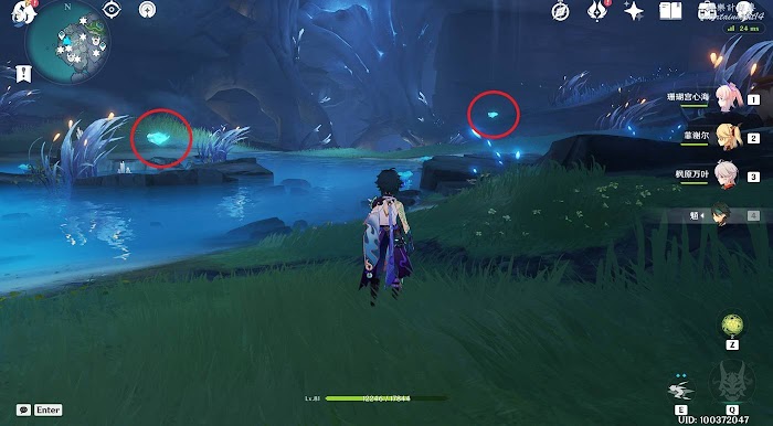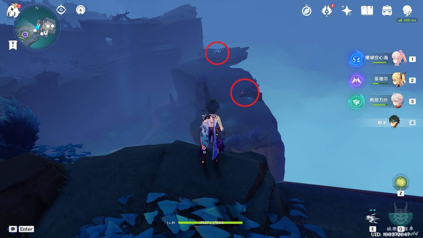 110號寶箱,用水元素啟動,然後觸碰全部微粒即可