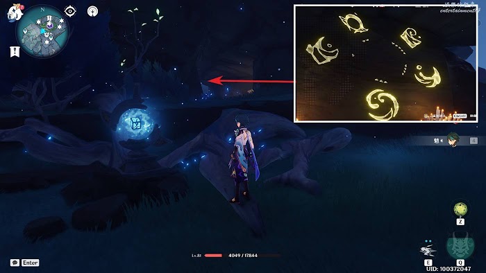 104號寶箱,從傳送點下來,往東看,按圖中的順序依次點亮即可