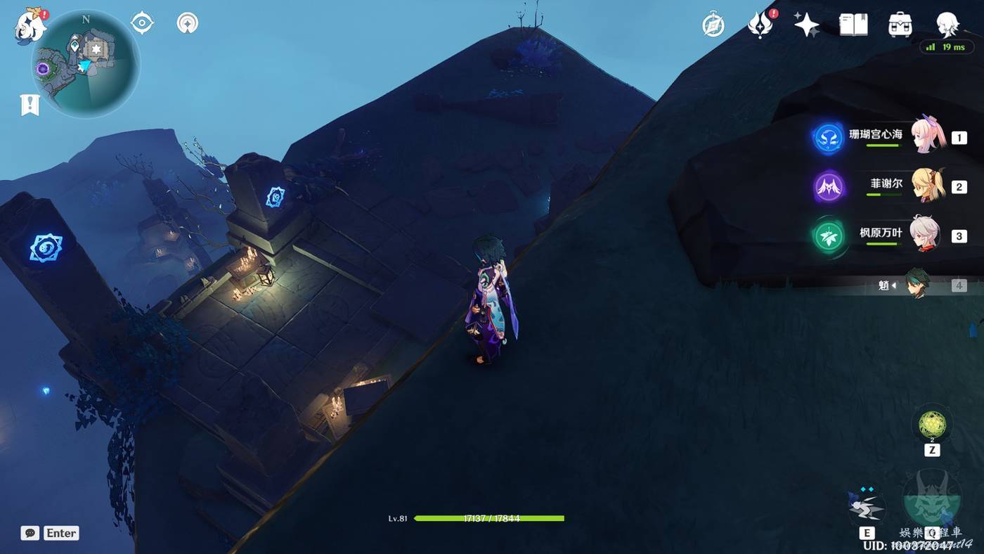 111號寶箱,繼續向上爬,來到最高處,在夜晚模式放入三個鍵紋即可