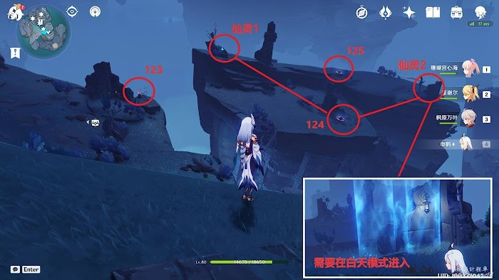 124需要引導兩個仙靈,仙靈1號在夜晚可以進入,仙靈2號在白天可以進入