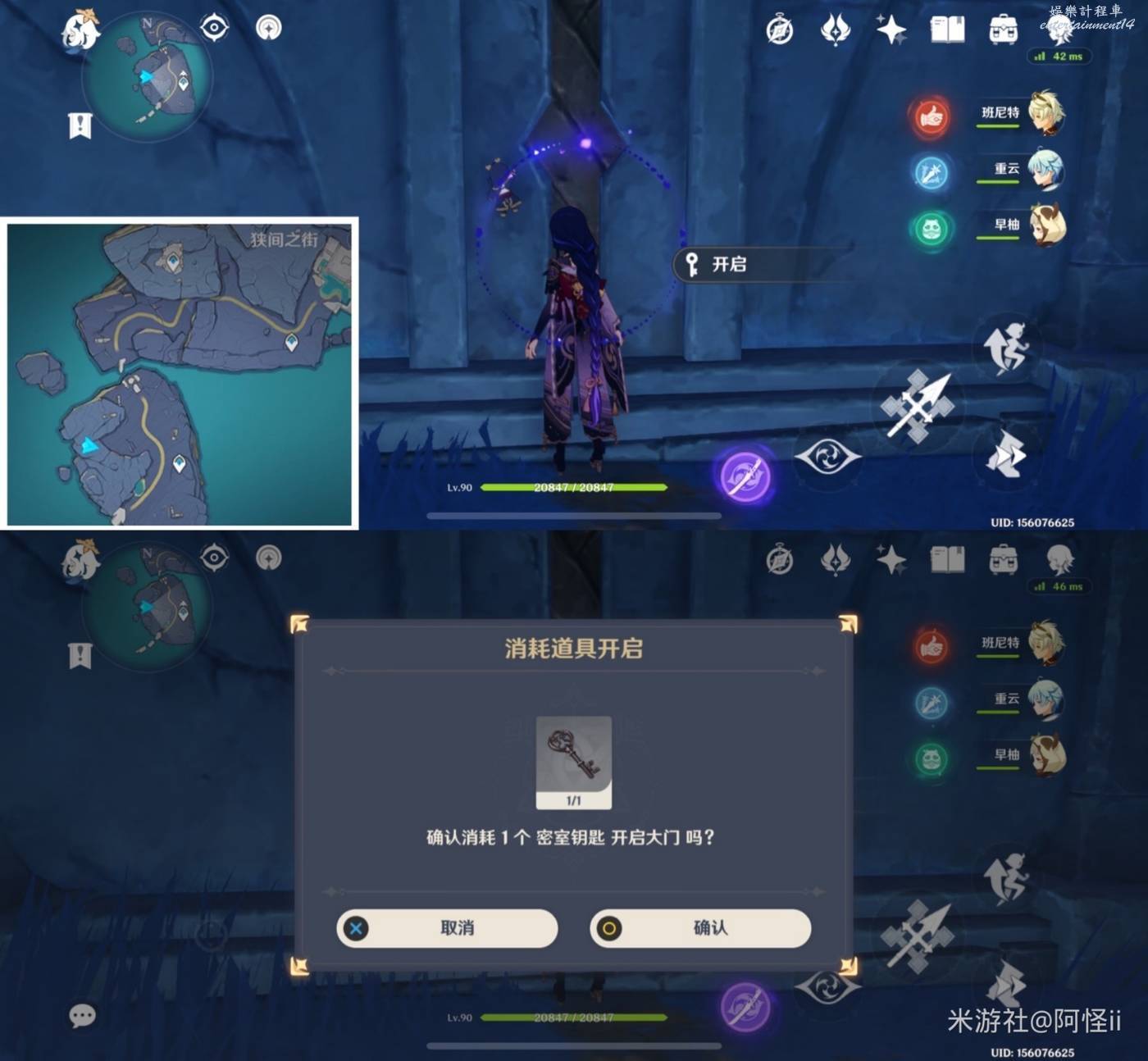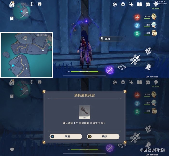 4、前往狹間之街如圖點位,找不到的可以看怪怪的動圖,開啟大門