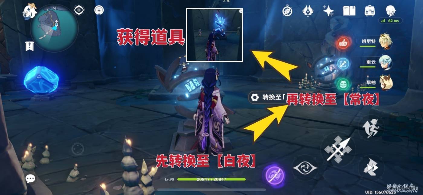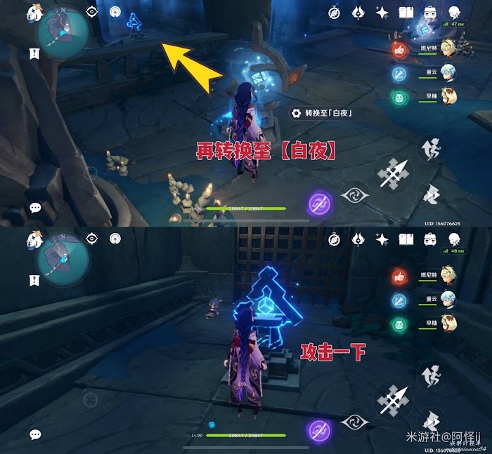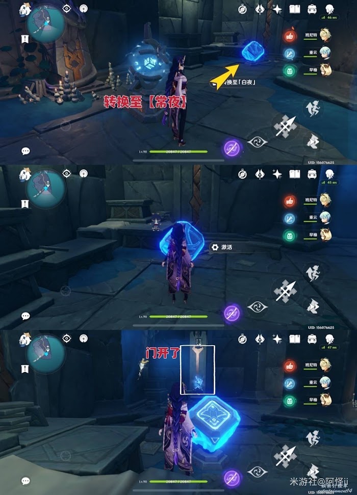 8、需要前往藍色三角位置解密,把身邊的日月機關轉換至【白夜】即可,到達三角機關處攻擊一下就能解鎖通道