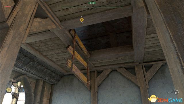 在這個塔樓裡,朝上看可以找到一個ti子,利用這個ti子再往上爬兩層就能找到多米恩。