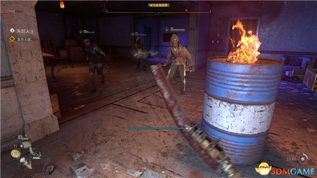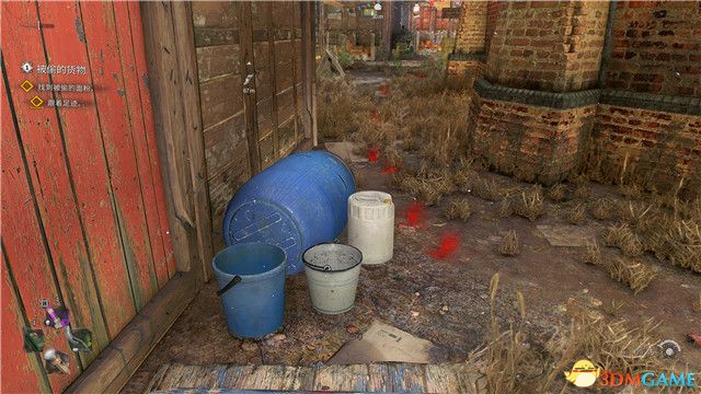 另外,留意這個區域有很多鋼鐵紮刺(如圖所示,鐵桶上就有這些鐵刺)的物品,你可以將敵人引誘到這裡,並使用腳踢技能將他們往鐵刺上踢,這也會是敵人造成巨量傷害,並有很大概率使他們瞬間死亡。