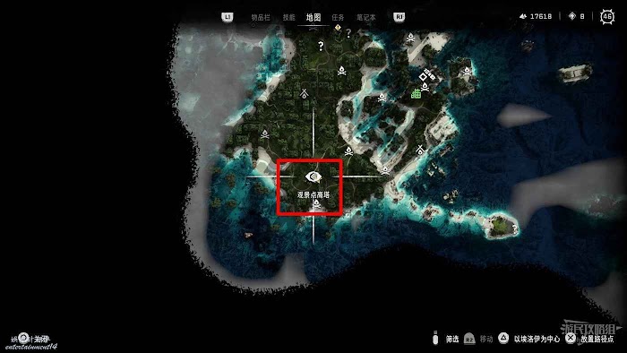 該觀景點位於地圖西側島嶼的南部,此觀景點需要先完成之前的八個才會解鎖。除此之外完成該觀景點需要在主線任務中解鎖【日翼者超控】。