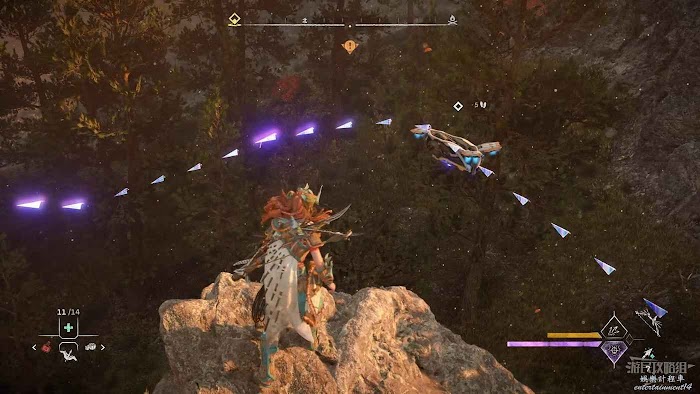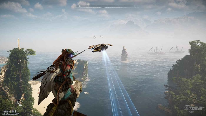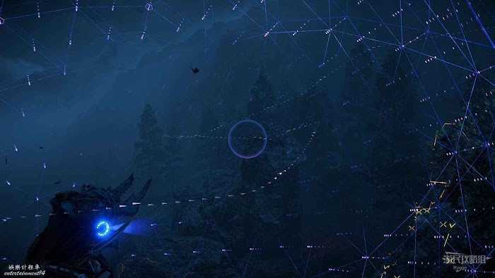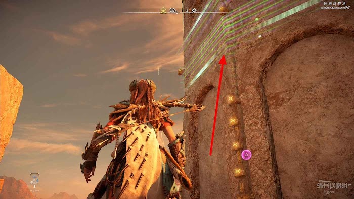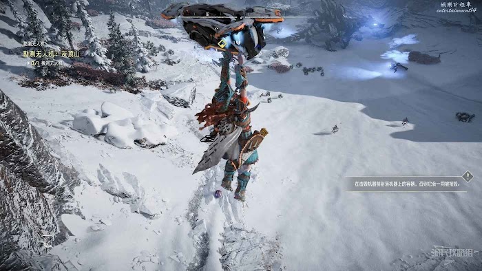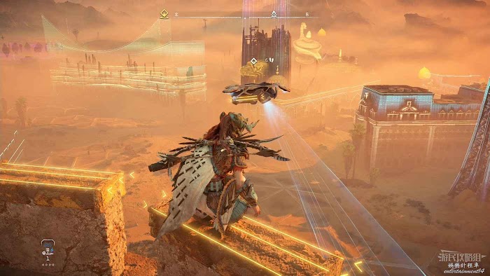 來到無人機活動區域後,我們通過抓鉤點到達柱子上方。