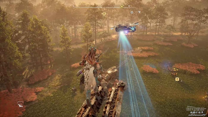 該無人機獲取非常麻煩,我們需要在大樹上的平臺間移動直到無人機活動的區域,大樹平臺的起始點位於無人機標誌的東邊。
