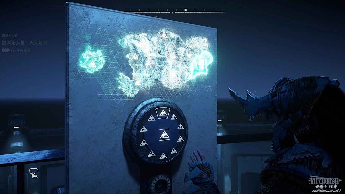 通過全息眼鏡掃描可以發現無人機的飛行軌道會經過一個石柱,但該石柱無法攀爬。