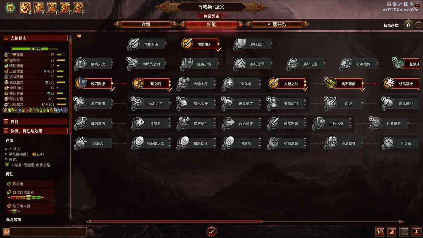 分享下我慈父開局流程。以後對於納垢兵種,經濟,建築看法。極端點瘟父應該14級,因為我有一場打出的是略處上風不是大勝。瘟父燒血技能已經點好了,事務官燒血技能也馬上點。而且領主等級全部上來,點了魔法線。後面戰役難度都不會太高。