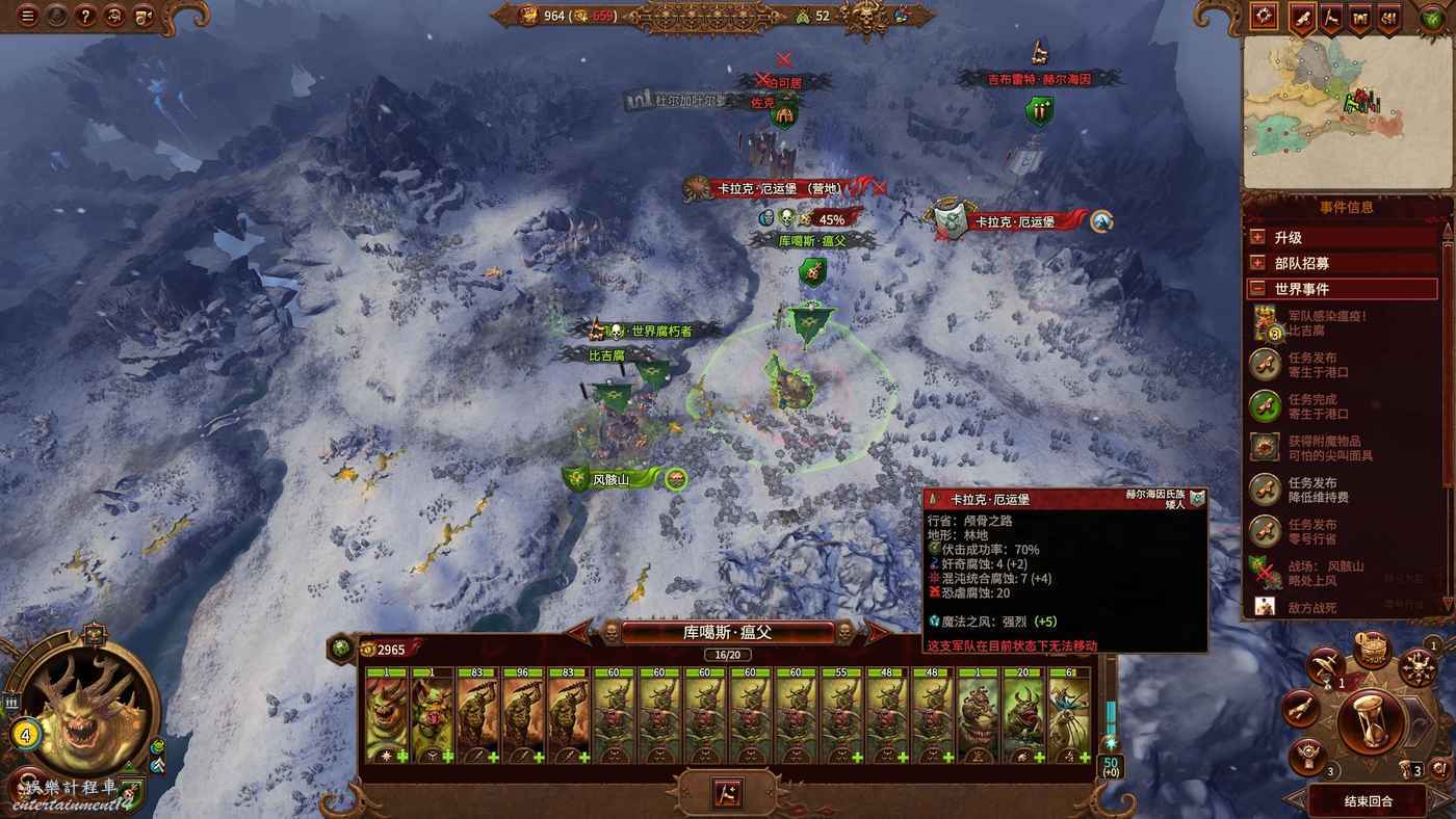 開局前首先規劃下,主要快速殺死初始的矮人以及食人魔。領主全部點黃線(12級解鎖燒血技能)。採用的是領主流,主要為了以後開分隊多路推進做準備(納垢大魔強力不用多說),如果你不玩領主流應該會比我更舒服,因為領主流前期是多花經濟在20回合左右起3個神尊大魔。