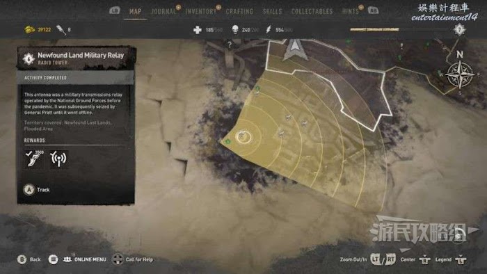 爬上無線電塔塔並將其啟動後,就能在大地圖上看到附近所有的抑制劑了,之後尋找抑制劑時也會更加輕鬆。