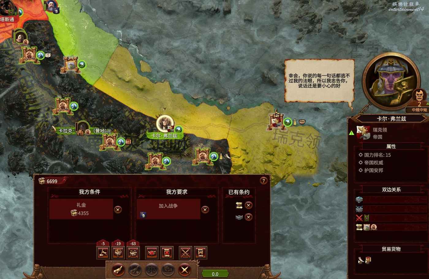 要讓帝國再次偉大,就不能讓卡皇宣戰你,所以矮人不要太快滅掉,花錢讓卡皇加入矮人戰局,先刷到正好感簽了互不侵犯和貿易。