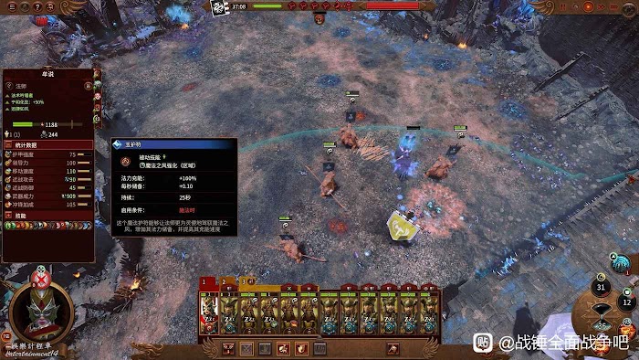 具體戰績如圖,我只是隨便試試,沒想到真的可以,所以具體配裝還可以改進。總的來說,七個司天丞加法強是沒跑的,然後事務官是有加魔風儲量變化的技能點,一個人25%,還有個裝備叫阿舒爾之書,再加25%,我的司天丞只有四個等級夠點到儲量buff,不過也夠用了,實測如圖,我放這個3費加88特保的法術前有39點藍,放了馬上有玉護符的buff,持續25s,正好時間結束技能又轉好,這個時候我有49藍,圖中顯示46是扣掉放法術的3點,大家自行領會。