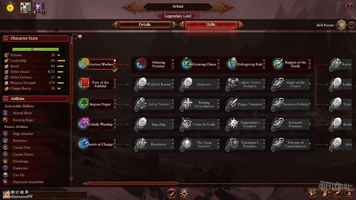 - 色孽神耀技能:降低招募成本,提升英雄行動成功幾率和伏擊成功幾率。