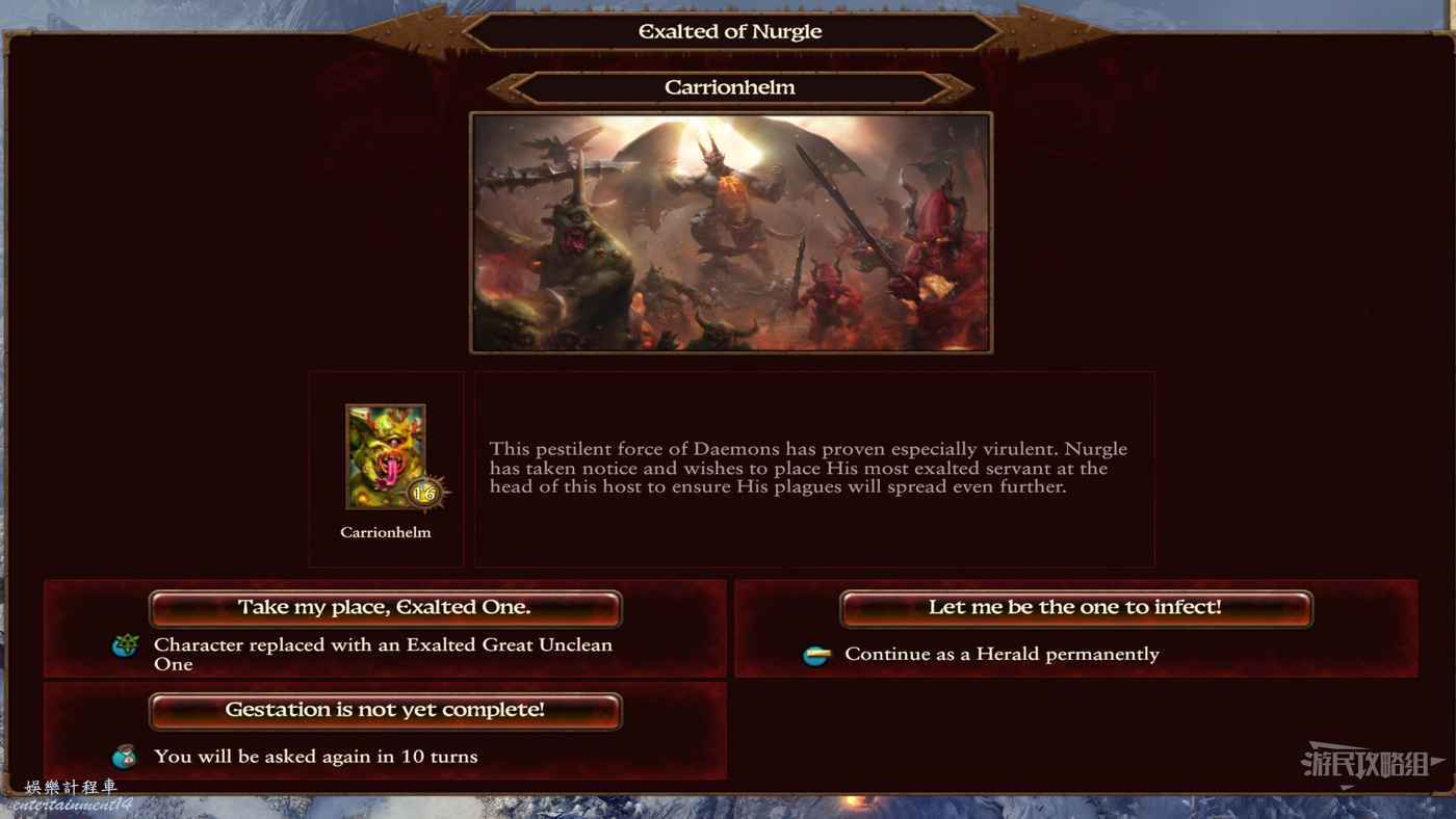 獻祭不同的混沌之神會影響到:①可以建造的建築物類型;②可以招募的單位;③將加入我方行列的英雄。