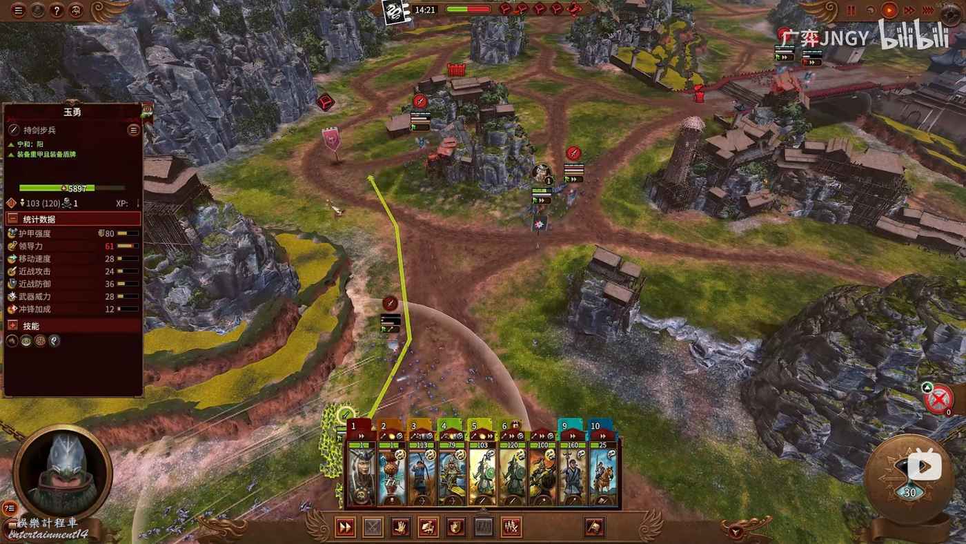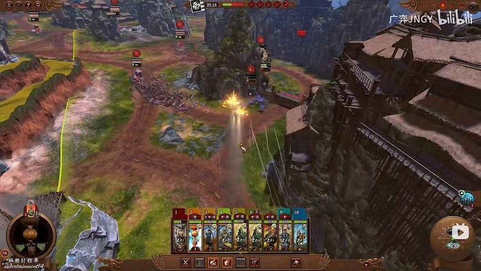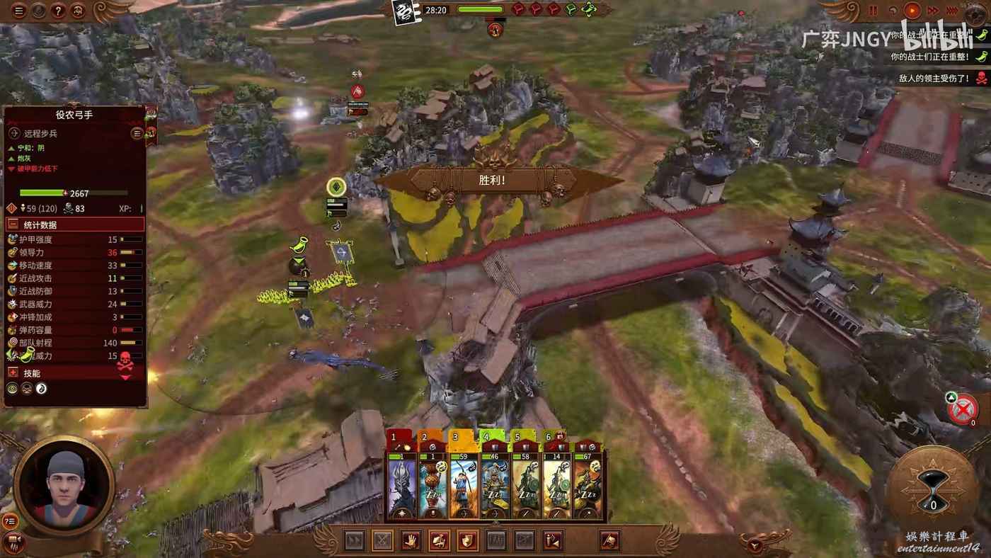 2.等殲滅了四五百人後,差不多了,按照我剛才所講的,把佯攻部隊拉近城中網站。利用先魂軍拖住敵人。一般來說騎兵一定能占下如圖所示的據點,農名矛只是象徵性地進城吸引敵人,等敵人來了趕快炮。你要時刻注意這兩隊,最好別送了。影片裡我沒來得及占下點,可能是先魂軍放歪了或者放早了。即使沒占下點也沒關係,能把一部分敵人從正面引開就行了,然後記住一定要拉走!重要的事情要反覆強調。如果你能保存這兩隊兵,敵人士氣就能崩得更早,容錯率也就越高。敵人士氣崩潰的比例是按和你剩餘軍隊的實力掛鉤的。我這裡失誤了沒躲技能,因為在解說,分散了注意力。