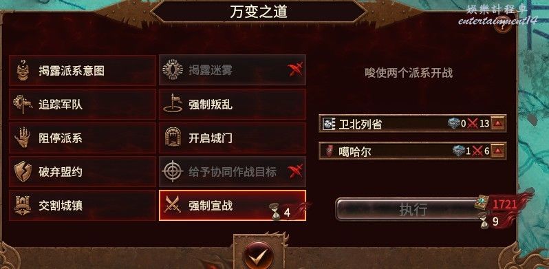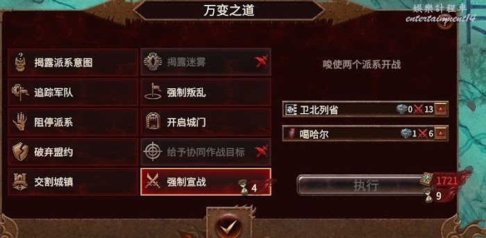 直接前進到對方首都,偷了,一般這家奸奇都在和右邊的派系開戰,隨意往往軍隊和對面拼光了。