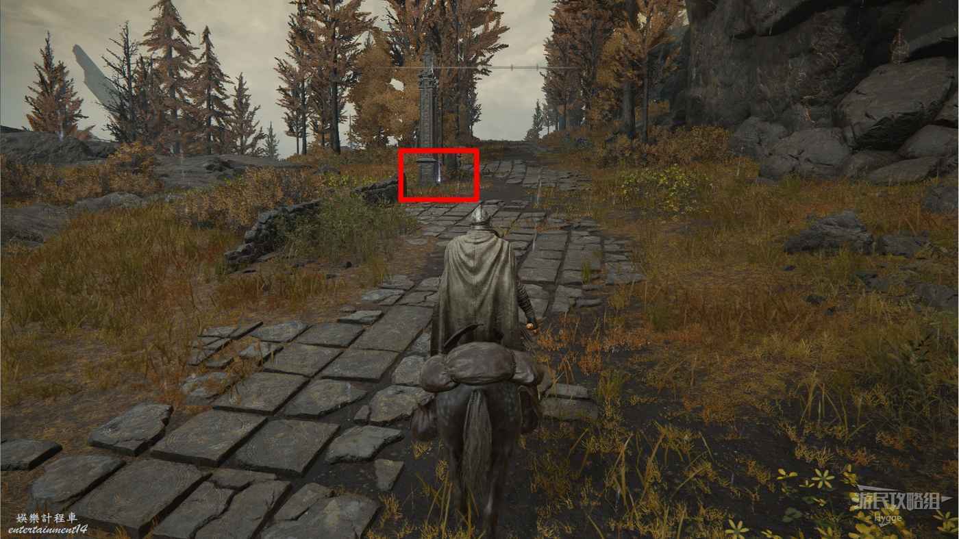 在道路旁的石碑下方可以找到該地圖碎片,在拾取地圖碎片時需要小心來自前方的石像巨人射出的巨型箭矢。