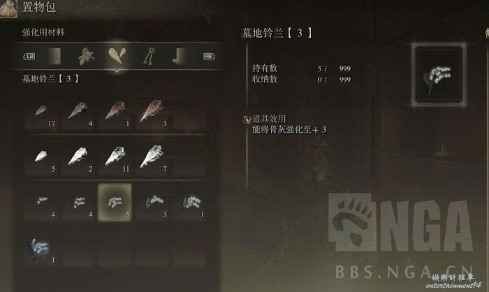 艾爾登法環 (Elden Ring) 回藍護符入手指南 1 3 月 2022-03-01 廣告 作者:鳳棲的戰士 來源:NGA 在地圖這裡,有一個沒腦袋騎士把守 記得穿抗死裝備,或者騎馬打死,別被即死累計滿了。 進去之後有一個鑰匙開一個斧頭,小骷髏用神聖灰變質一下武器。 死了在砍一下就能死,如果還不死就去先打旁邊拿著長柄冒著白火的貴族,殺了全部的骷髏就死了。 中間有一個機關,是從上落下來的大刀,落下來之後踩上去就可以去二樓開門口機關拿骨灰。 裡面還有大量鈴蘭 以及帶名字鈴蘭+3。