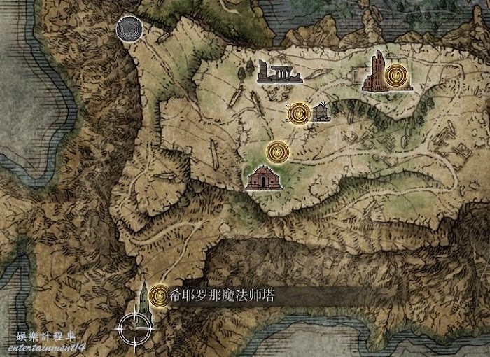 解密過程需要通過隱形橋與白霧指引進入魔法師塔內部,位置如下,選中處為隱形橋,西北方為索爾城。