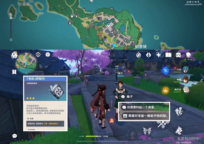 對話順序:你需要釣起一個派蒙→那最好準備一艘能開炮的船