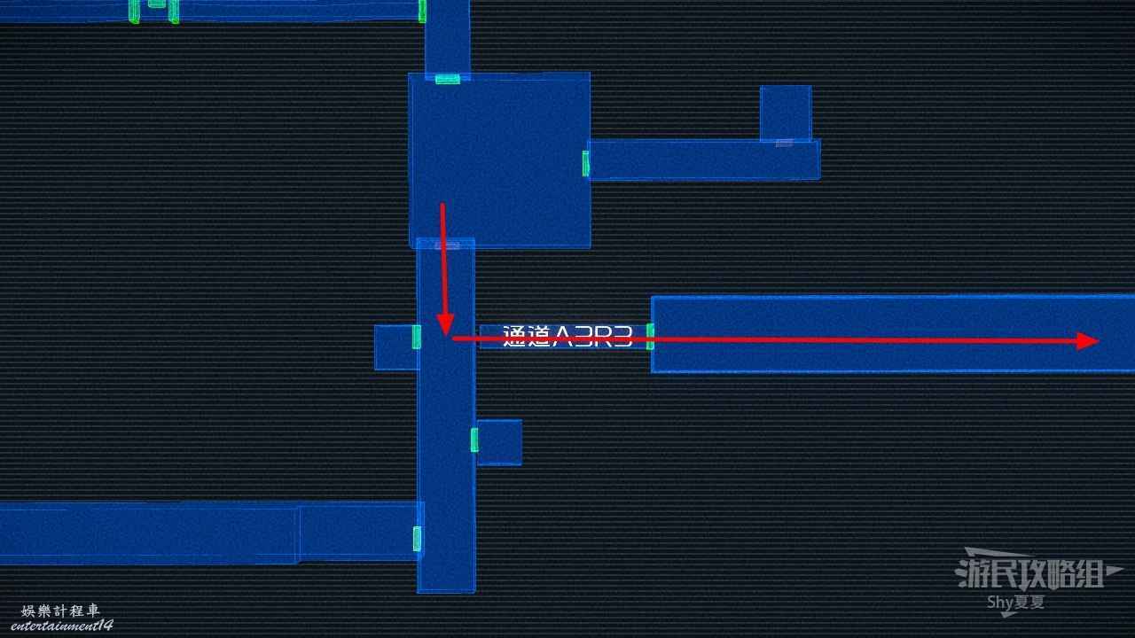 通過【交換機庫房】來到【通道B2R2】,這裡的機關需要一次性通過,被鐳射照到就要重來,看鐳射的照射方向,然後躲在掩體後即可。之後分別通過【通道B2R3】、【通道B2R4】、【通道B2R5】、【通道B2R6】。