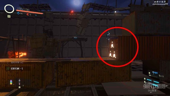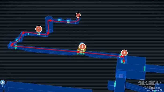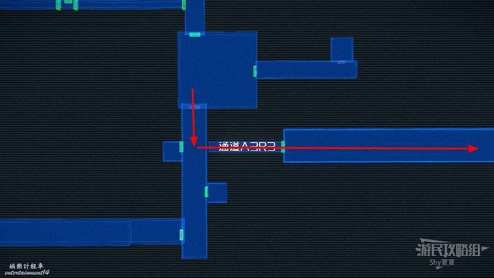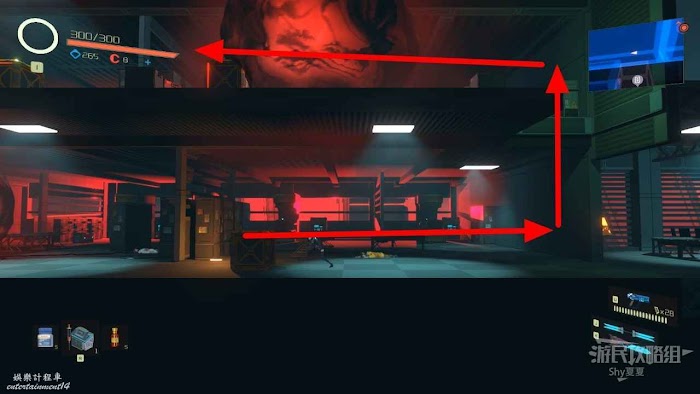 接著前往【通道B2R1】,這個地方有很多紅色鐳射裝置,需要利用掩體通過。