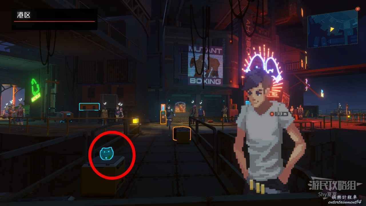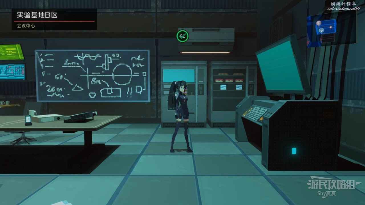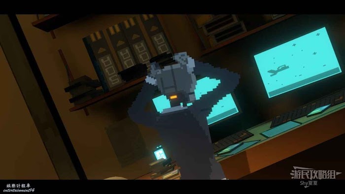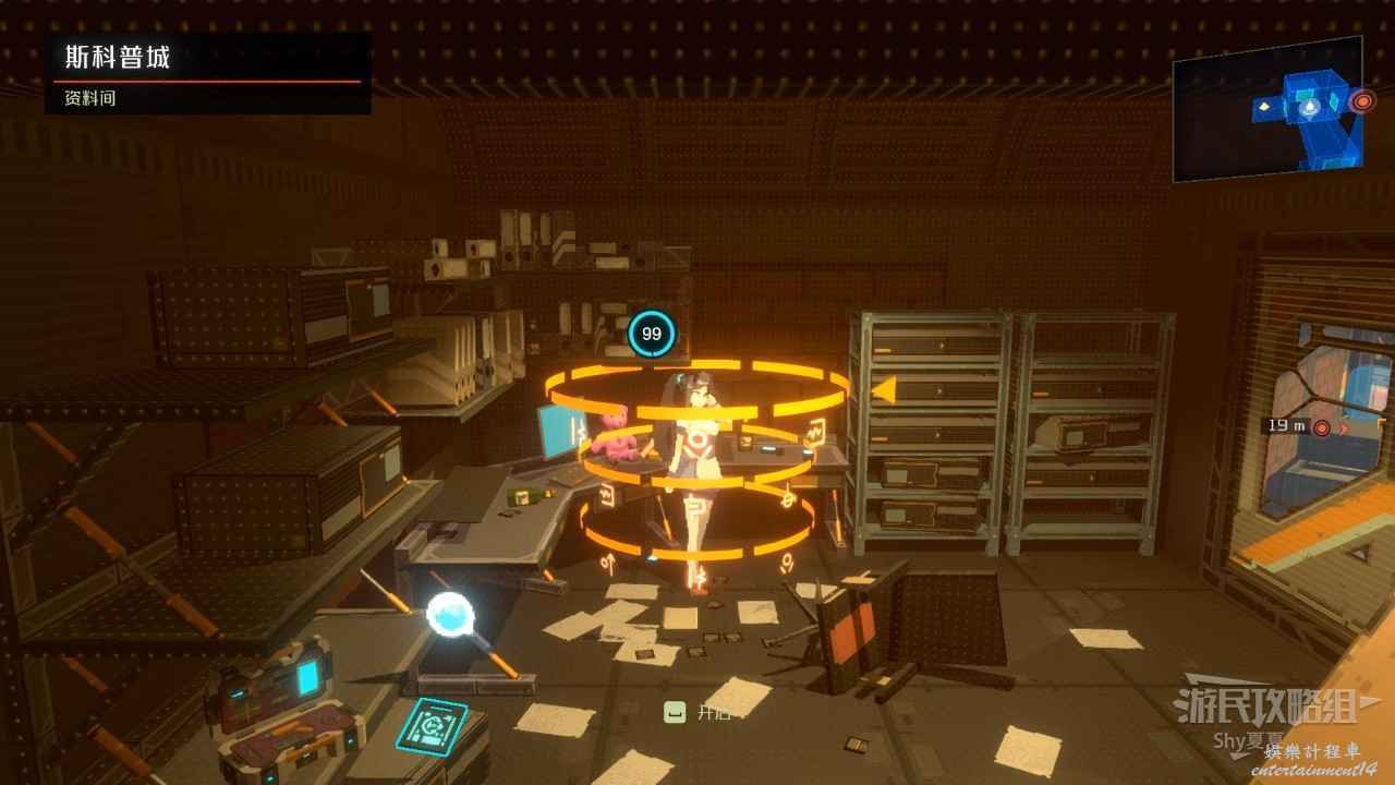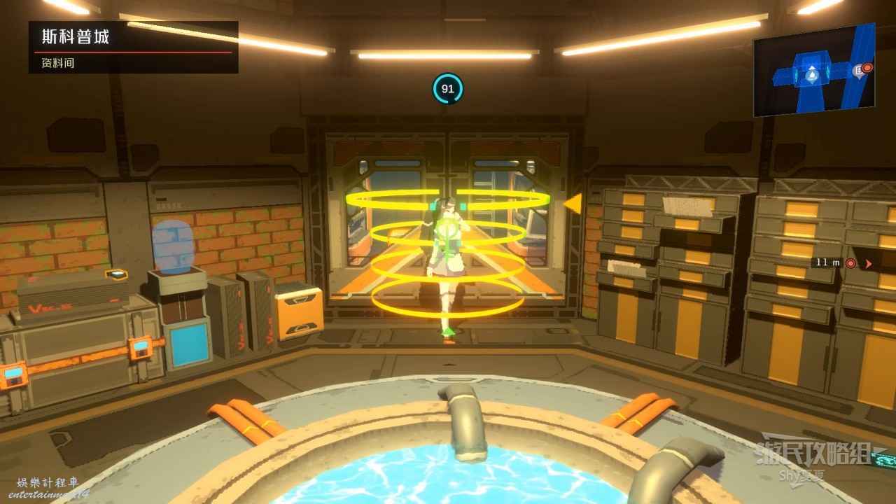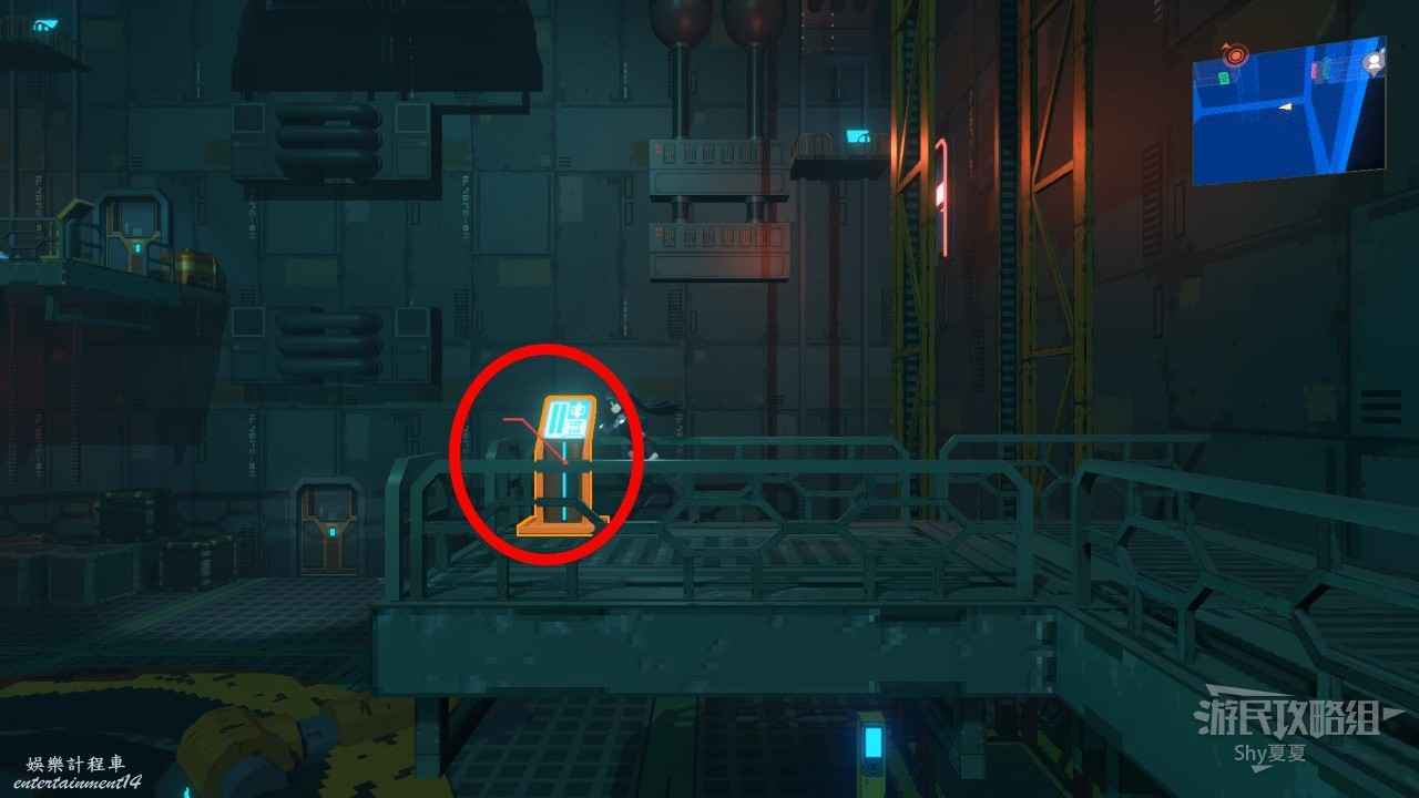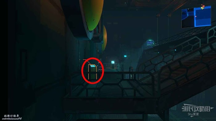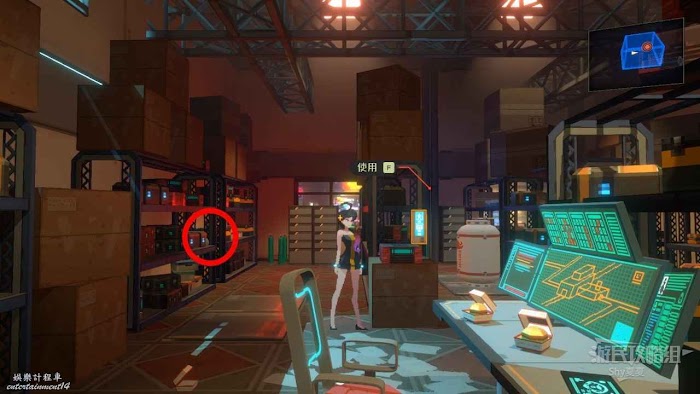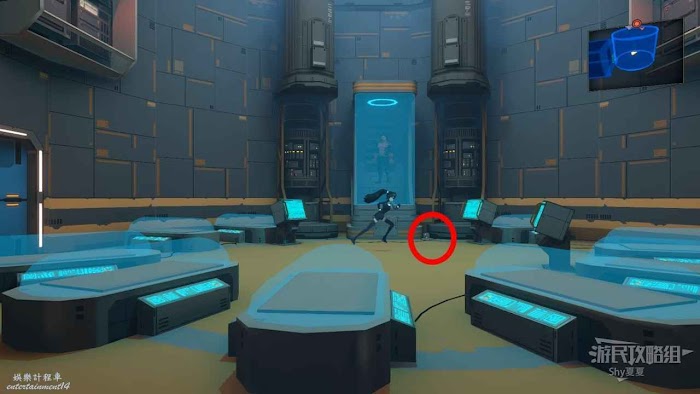 擊敗機器人後一直往右走,會來到【中央管理區資料室】,在這裡有【招財貓(23/25)】可以收集,收集後破解電腦,從右側離開。