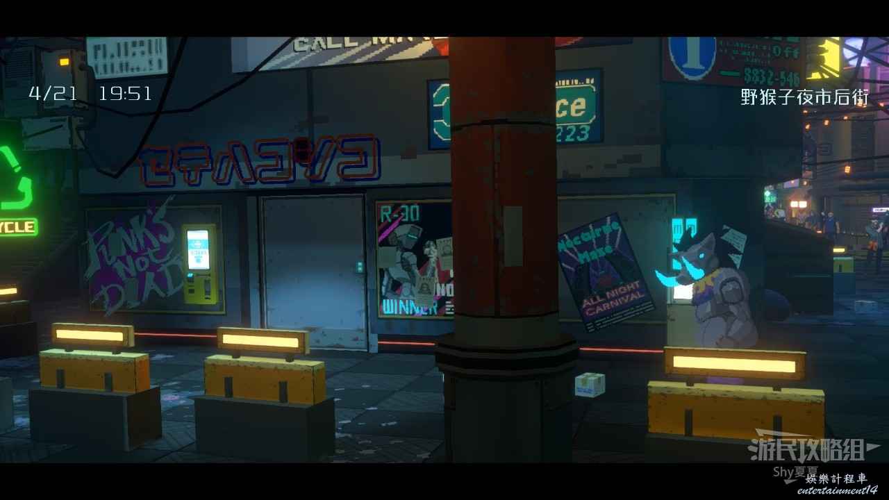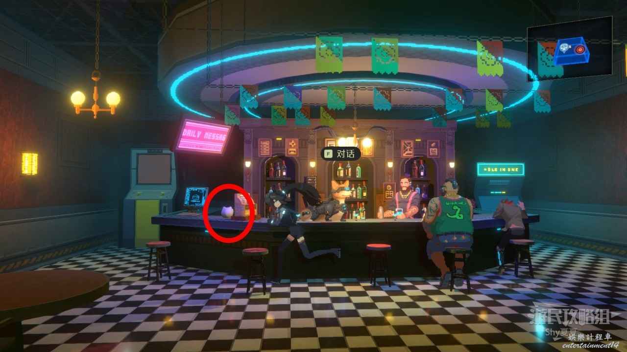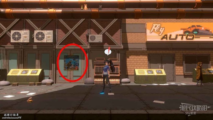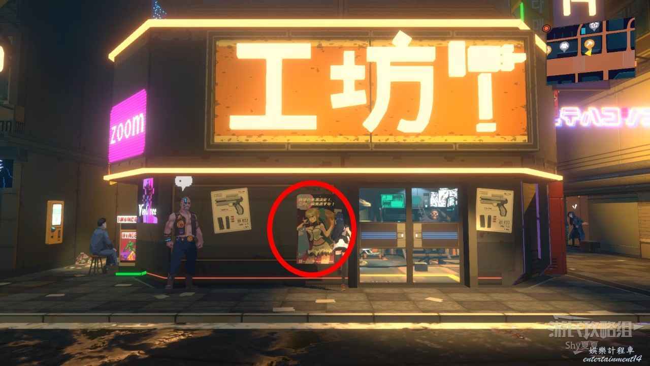 馬路左側有另一幅【海報:模擬Z46版本現已上市!!(2/25)】,最後搜刮一下周圍的垃圾並且聽一下NPC的對話,就可以進入酒吧了