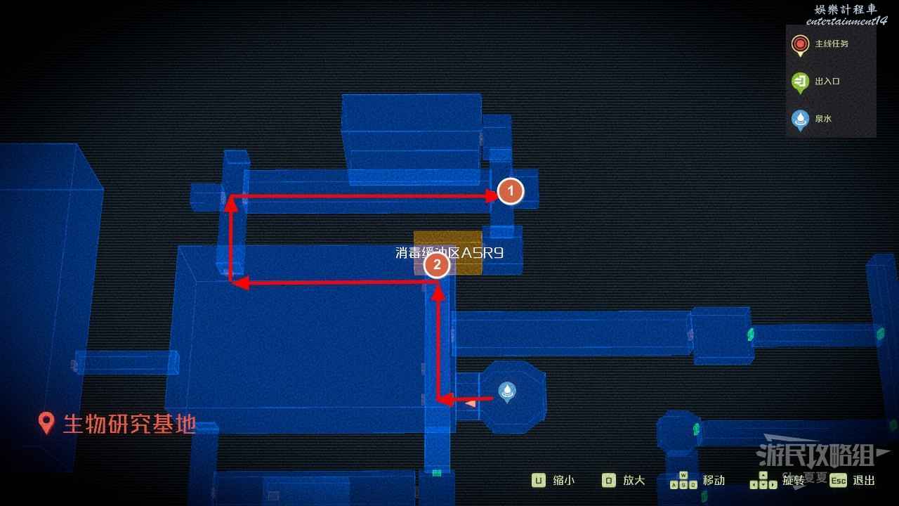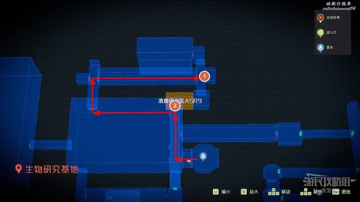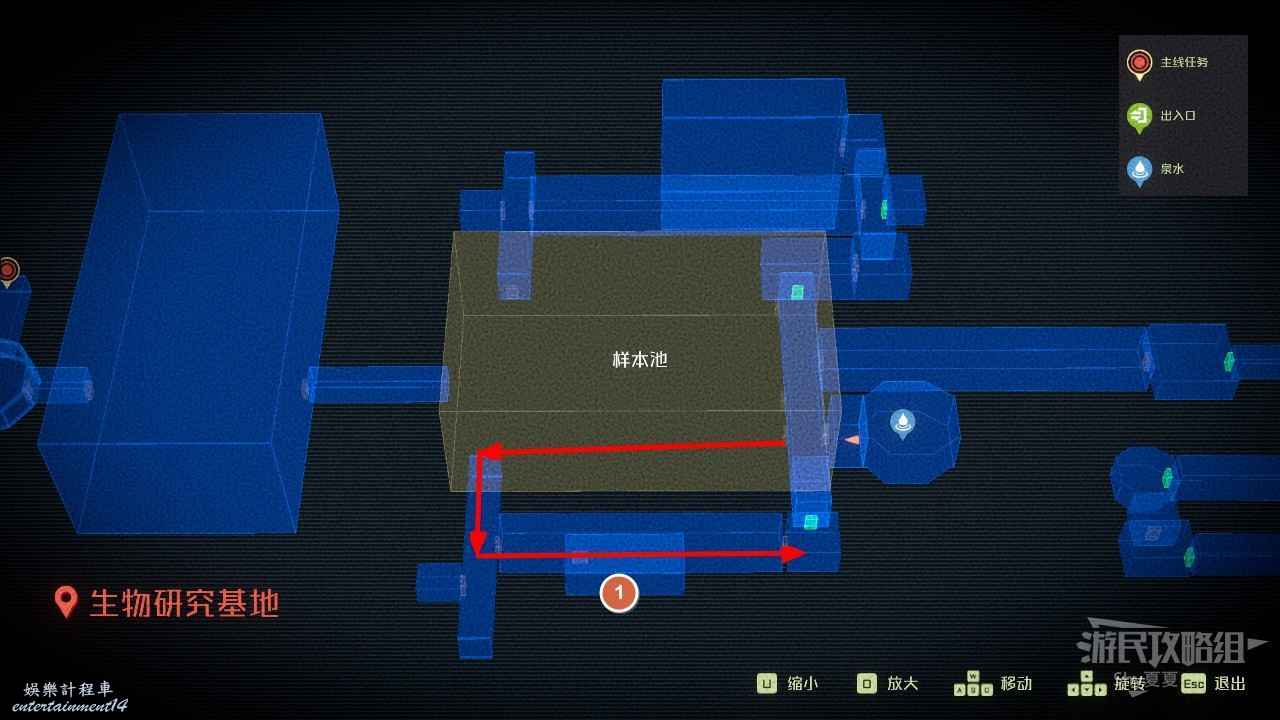 來到實驗基地,從【電梯井】→【員工中轉區】→【通道B1L2】,再往前走就可以看到【泉水:實驗基地B區1(9/15)】了,這時去把支線和隱藏故事清了。再回來過主線。