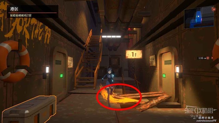 回到1層,去左邊的【通道B1R1】,就能繼續主線劇情了,這裡會碰到紅球,用剛剛的槍打爆即可。