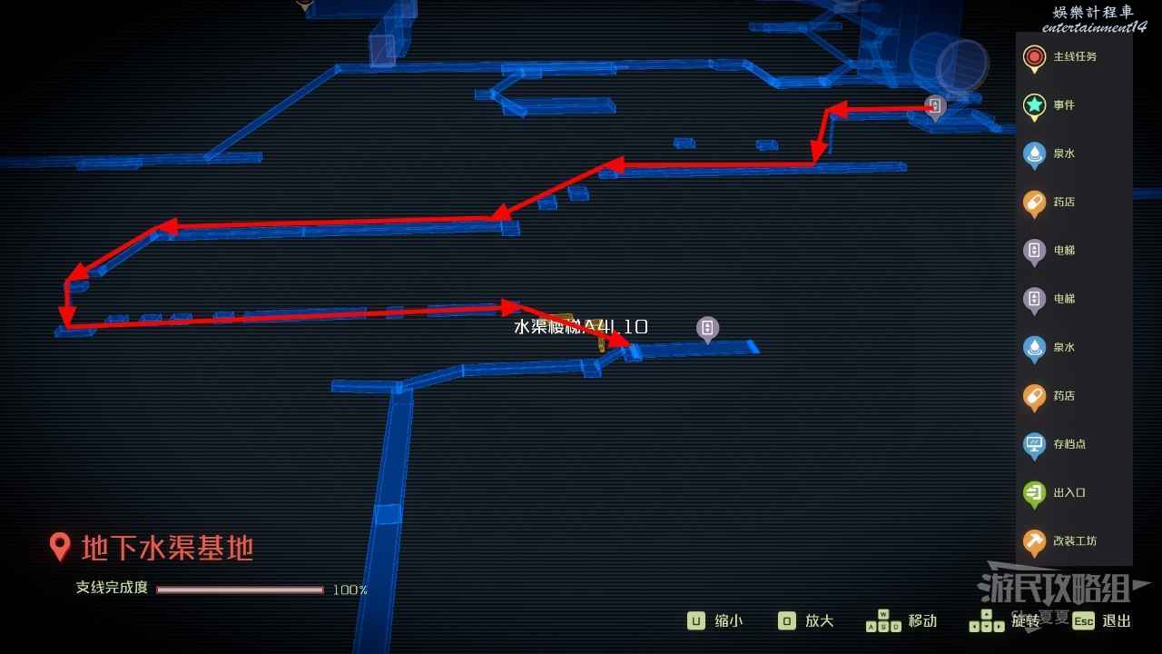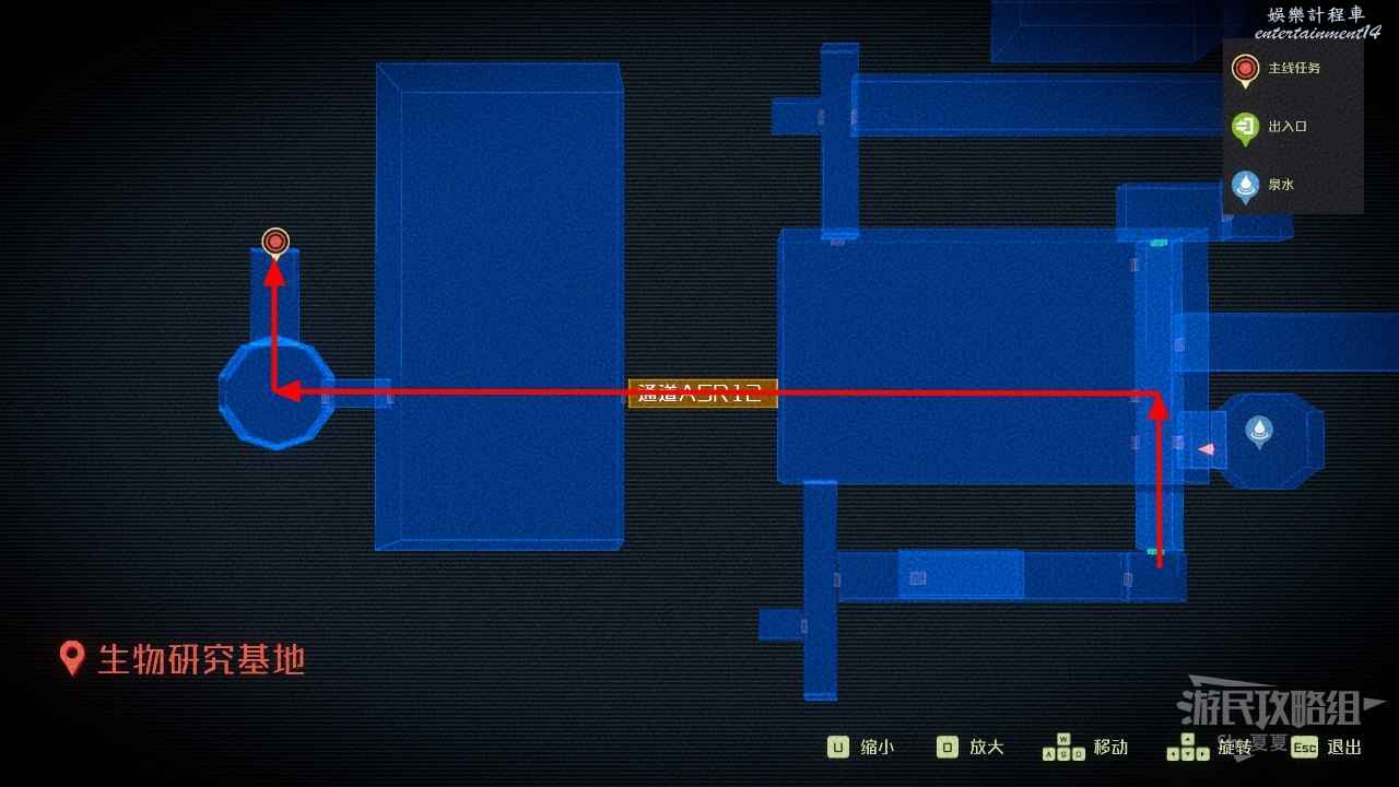 難道書籍後,直接查看地圖,來到北邊的艾倫實驗基地,從右側坐升降梯下去。