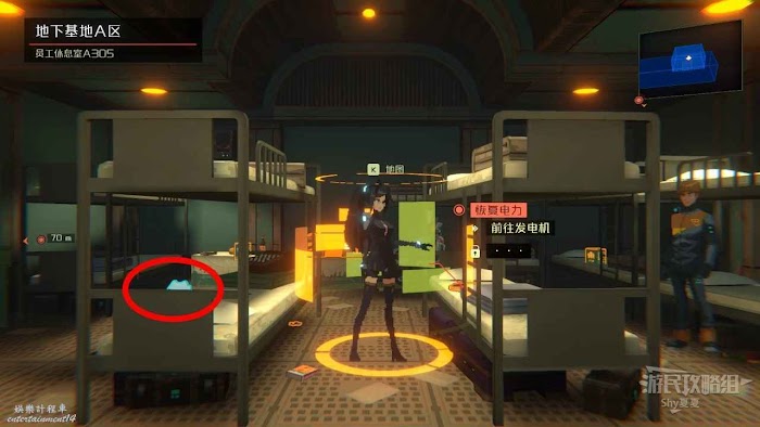 坐電梯到1層,進行存檔。存檔後,還是去右下方的屋子【員工活動室】,獲得【三級許可權卡】。