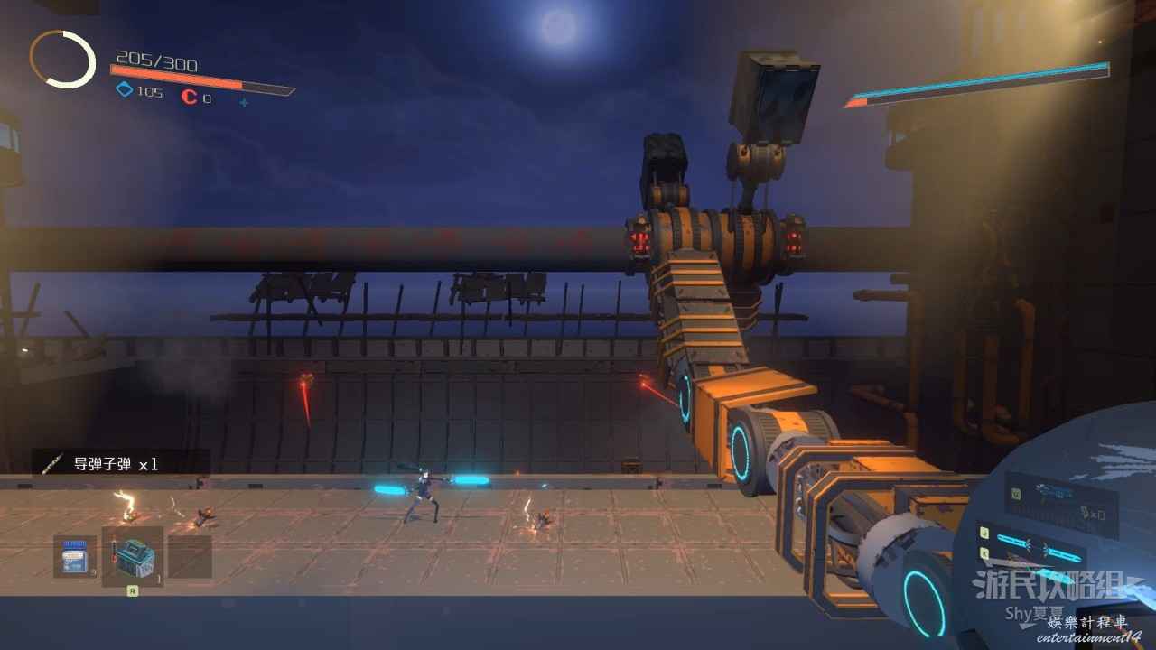 神秘機械需要攜帶導彈進行戰鬥,首先他的普通攻擊我們繞背就能躲開,當他站起來的時候,就要用導彈進行轟炸,能夠對其造成大量傷害,所以要節省導彈,只有在這種關鍵時刻使用。
