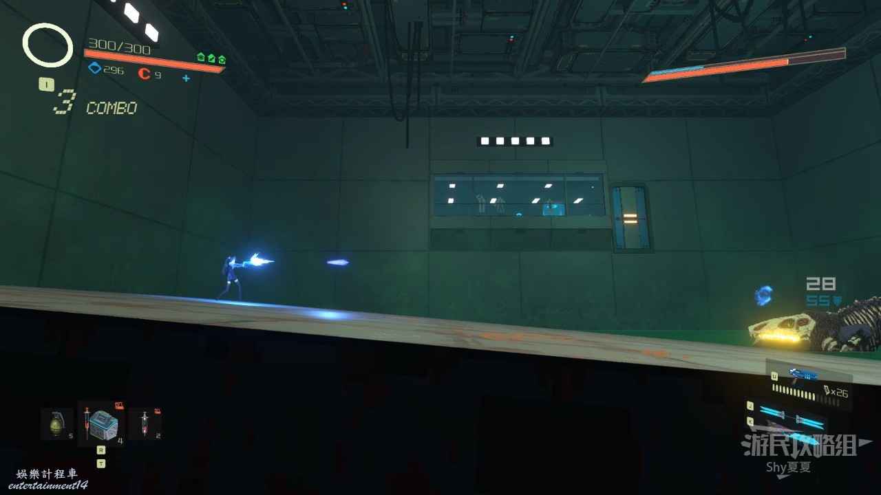 敵人是女忍者,速度很快,儘量用遠端手槍進行輸出,當她蹲下蓄力的時候就要跳躍躲避了,其他時候遠距離輸出,沒護甲了靠近瞬殺。
