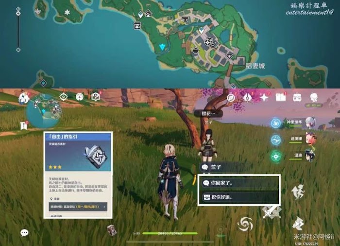 如果璃月找不到竺子小夥伴可以來稻妻這個點位看看(因為做完雷神傳說任務第二章,稻妻解除鎖國秦師傅回到了稻妻)