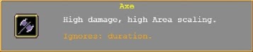 感覺一般的武器,攻擊方式是向最近的目標丟出,但是飛行距離很短,然後會反向無限飛行並且穿透所有敵人。適合那種被一大群怪追著的情況。但只要我輸出夠暴力自然不會被追x。