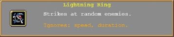 裝備後每隔一段時間劈下閃電攻擊隨機敵人。雖然DPS很高但是溢出嚴重,後期怪多了挺無力的。