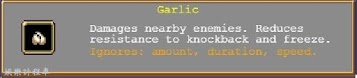 -護身類:代表武器大蒜,聖經,冰魔杖(這個我有些猶豫應該放在開路還是護身)。特色是可以製造一個較為持久的環繞自身的攻擊區域,擊退或殺死靠近的敵人。冰魔杖因為其極高的攻擊速度(哪怕進階前,搭配上增加發射數量的指環和自身升級減的CD也能突突突打個不停)和鎖最近目標的特性我也將它放在了護身類武器上。